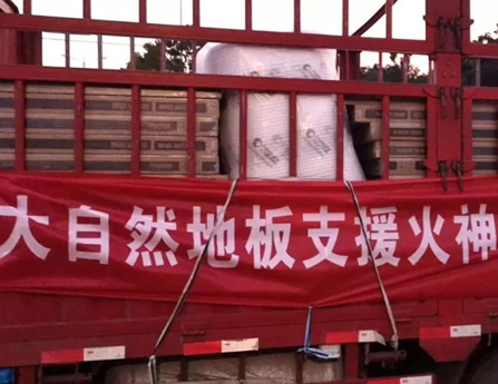 2020年初疫情之際,大自然家居緊急調(diào)動 臨近地板貨源,捐贈超過1100平方米的大 自然零醛智造強化地板,并召集武漢各區(qū) 運輸、安裝師傅20多名,以高效的執(zhí)行力 為火神山醫(yī)院的建設添磚加瓦,用實際行 動踐行著“擔環(huán)保責任