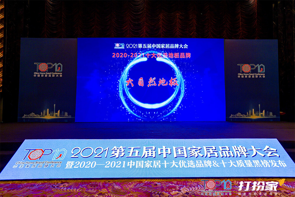 2021年7月19日下午,2021第五屆中國家居品牌大會(huì)在廣州隆重舉行,公開發(fā)布“2020-2021中國家居十大優(yōu)選品牌”36個(gè)榜單,大自然家居旗下大自然地板品牌強(qiáng)大的品牌綜合實(shí)力與口碑,榮膺“2020-2021十大優(yōu)選地板品牌”稱號。