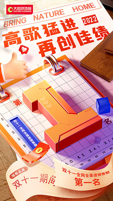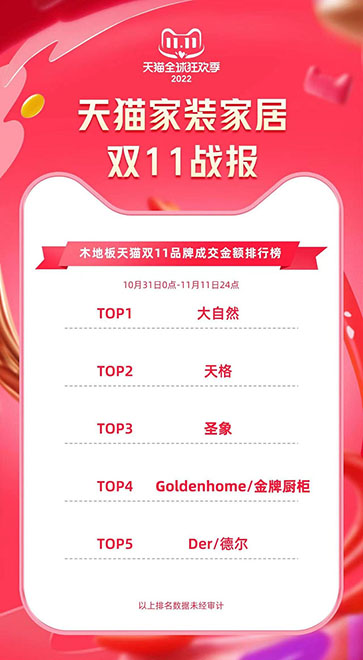 資料顯示,大自然地板自2016年參加天貓雙11活動以來,已經連續第7年奪得地板品類銷冠。