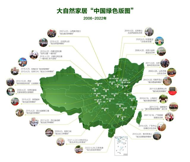 在綠色生態(tài)上,大自然家居一直在踐行綠色發(fā)展之路,遵守“砍一棵樹,種十棵樹”的承諾,自2006年起,大自然家居與中國綠化基金會合作,每年開展公益植樹活動,在國內(nèi)外建成了27片公益生態(tài)林,植樹逾80萬棵,植樹面積超過102萬平方米。使林業(yè)生態(tài)系統(tǒng)功能不斷完善,森林固碳釋氧、保持水土、調(diào)節(jié)氣候、保護(hù)生物多樣性等生態(tài)功能不斷增強(qiáng)。
