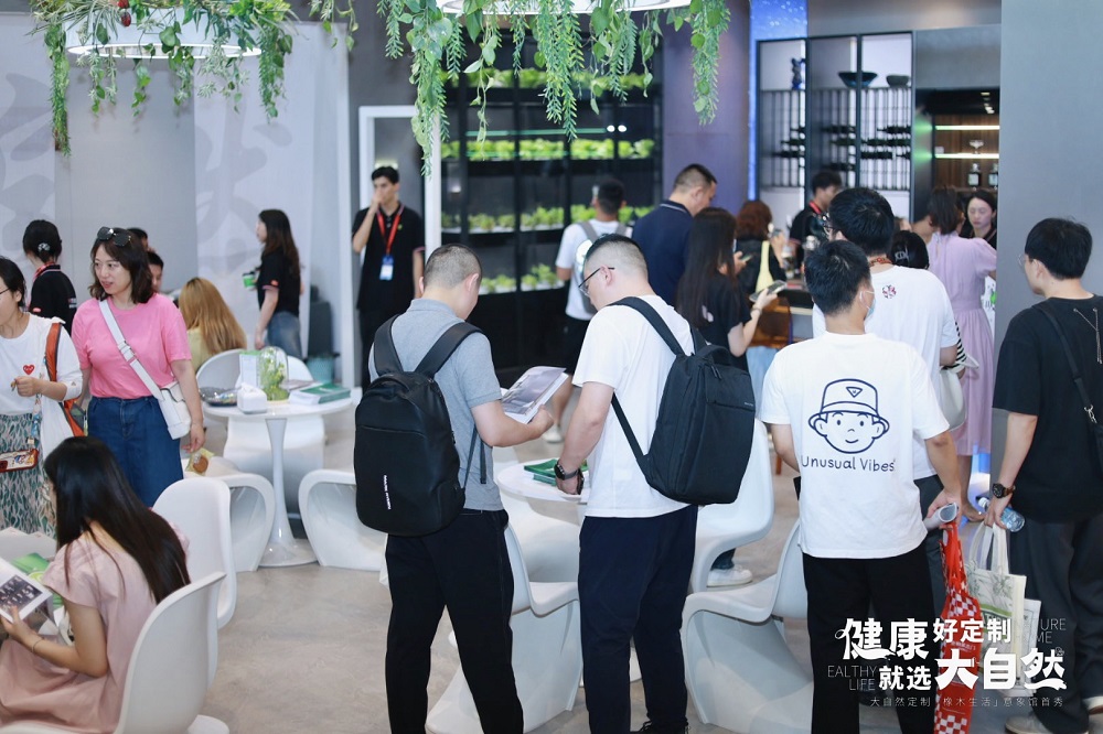 展館人氣聚集,對自然生活的寫意與向往吸引眾多行業人士、客商、網紅達人、生活主播、小紅書KOL及專業媒體的關注打卡,現場人流絡繹不絕,展開一場綠色健康×高定生活的隔空對話。