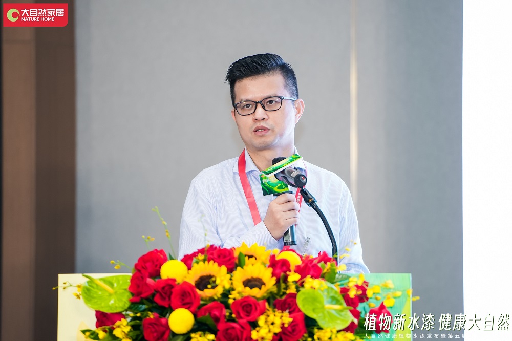 大自然家居研究院院長楊亮慶博士在主題演講中指出,健康、環保和綠色已經成為家居業態當下及未來的發展關鍵詞,大自然家居采用健康植物水漆取代普通水性漆,可顯著降低碳排放量,對家居行業的綠色高質量發展無疑是一次里程碑事件,也是守護人類和地球共同健康、踐行持續發展理念的一次有力行動。
