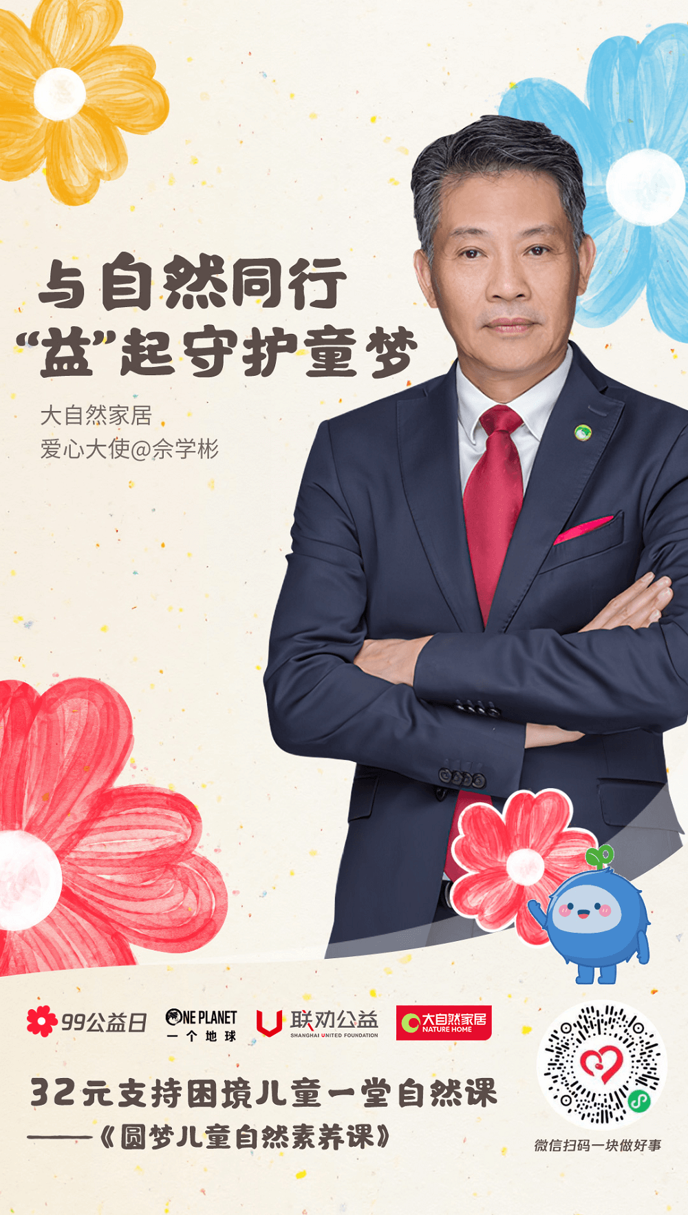 一分善意,萬分有力。近日,由騰訊公益率先發起的99公益日正在火熱進行中。作為今年99公益日參與企業之一,大自然家居積極參與99公益日行動,由大自然家居集團董事長佘學彬親自擔任愛心大使,同時廣泛發動事業部團隊、社會各界人士進行籌集善款,呼吁共同關注、守護困境兒童的健康學習成長。