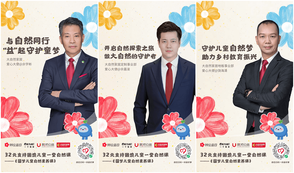 作為家居行業的知名企業,大自然家居積極履行社會責任,在大自然家居集團董事長佘學彬的帶領下,大自然家居集團常務副總裁、定制事業部總裁佘嘉浚、大自然家居地板事業部總裁饒海清紛紛進行愛心接力組隊捐贈,并撬動事業部全員參與,將公益行動影響力提升最大化,將愛心傳遞全國各地。