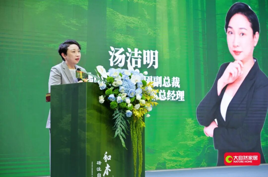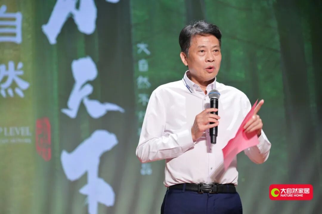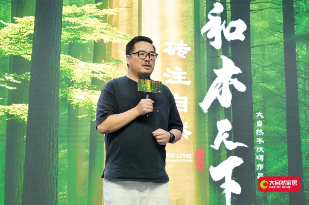 隨后,大自然家居董事局主席佘學彬先生登臺分享戰略動機:為滿足消費者對“風格統一、功能復合的整體空間”需求,品牌以“地面空間整體解決方案服務商”定位,將30年木地板技術注入瓷磚研發。他強調,此跨界旨在“放大木優勢”,使木紋磚兼具木材溫潤質感與瓷磚耐用性能,集團將依托品牌積淀與全域營銷資源,全力開拓新市場。