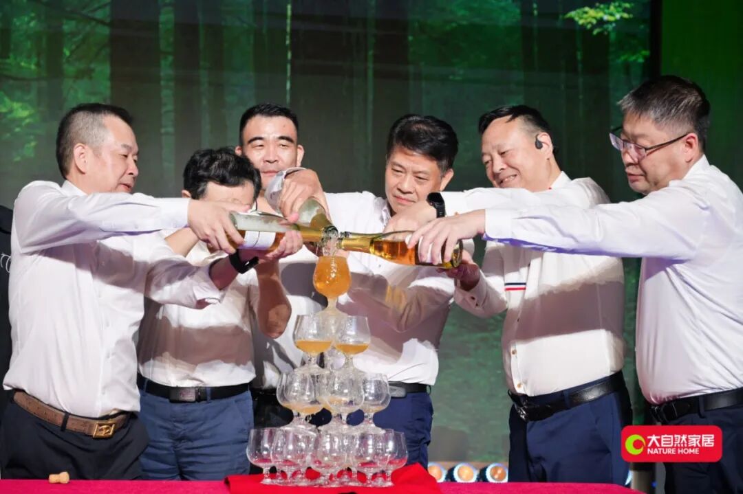 活動尾聲,“尊享時刻·答謝晚宴”在溫馨熱烈的氛圍中舉行。大自然家居董事局主席佘學彬先生登臺致祝酒詞,感謝合作伙伴風雨同路,并展望以木紋磚為新起點的大家居戰略未來。運營中心核心管理團隊與嘉賓集體舉杯共慶,晚宴期間穿插精彩演藝與多輪抽獎環節,現場氣氛真摯熱烈,為全天活動畫上圓滿句號。