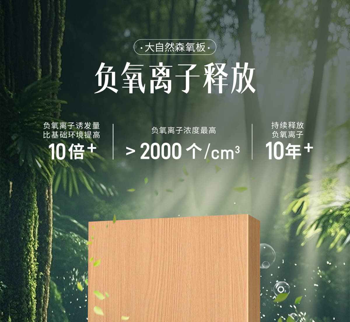 誘發(fā)空氣負(fù)離子量 比基礎(chǔ)環(huán)境提高10倍+