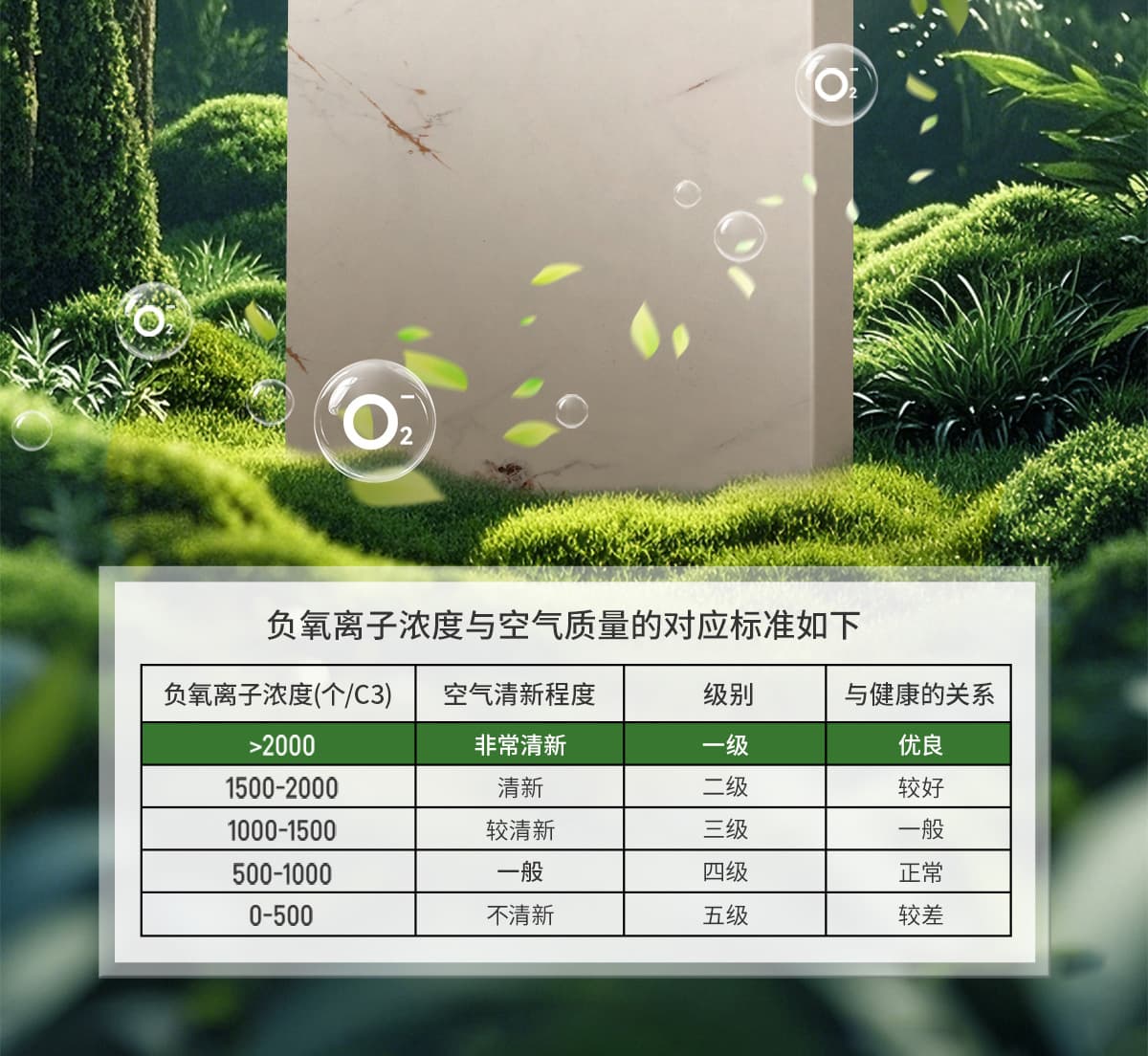 誘發空氣負離子量 比基礎環境提高10倍+