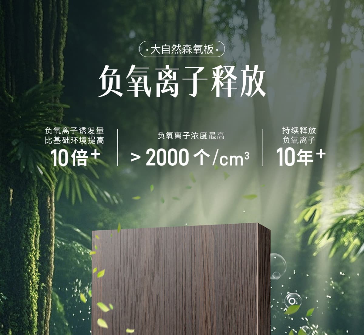 誘發(fā)空氣負(fù)離子量 比基礎(chǔ)環(huán)境提高10倍+