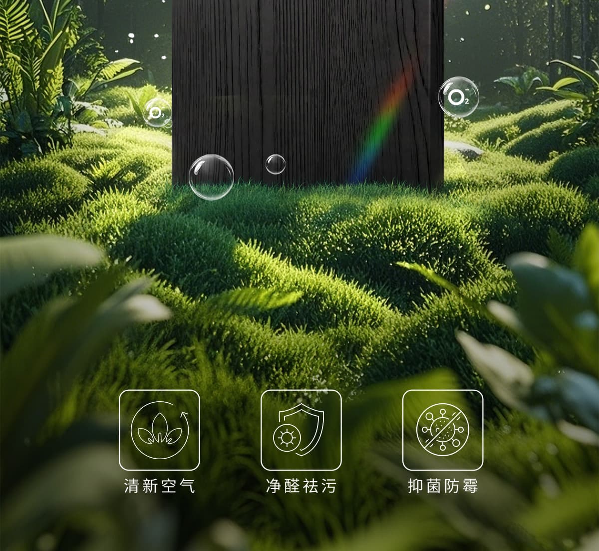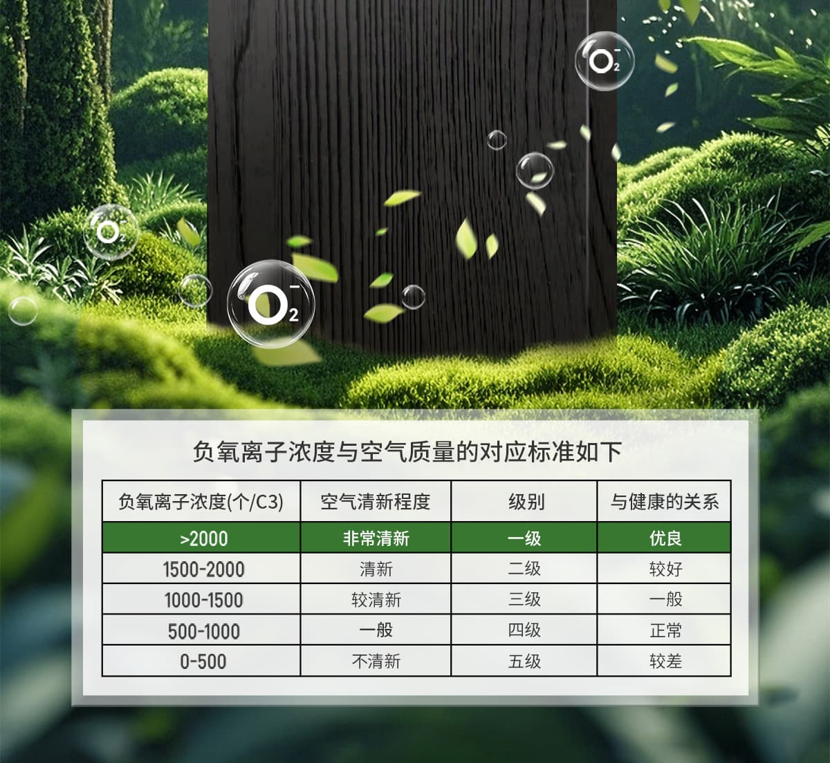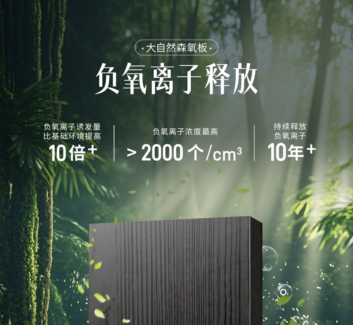 誘發(fā)空氣負離子量 比基礎環(huán)境提高10倍+